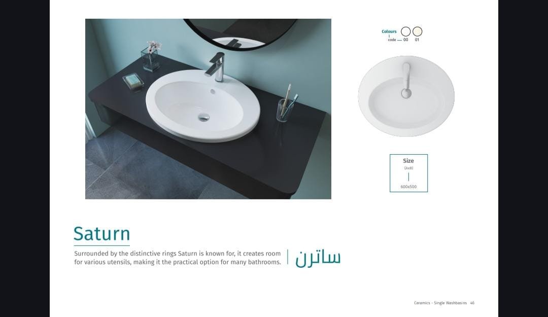 حوض ساترن ٦٠سم كونترتوب أبيض